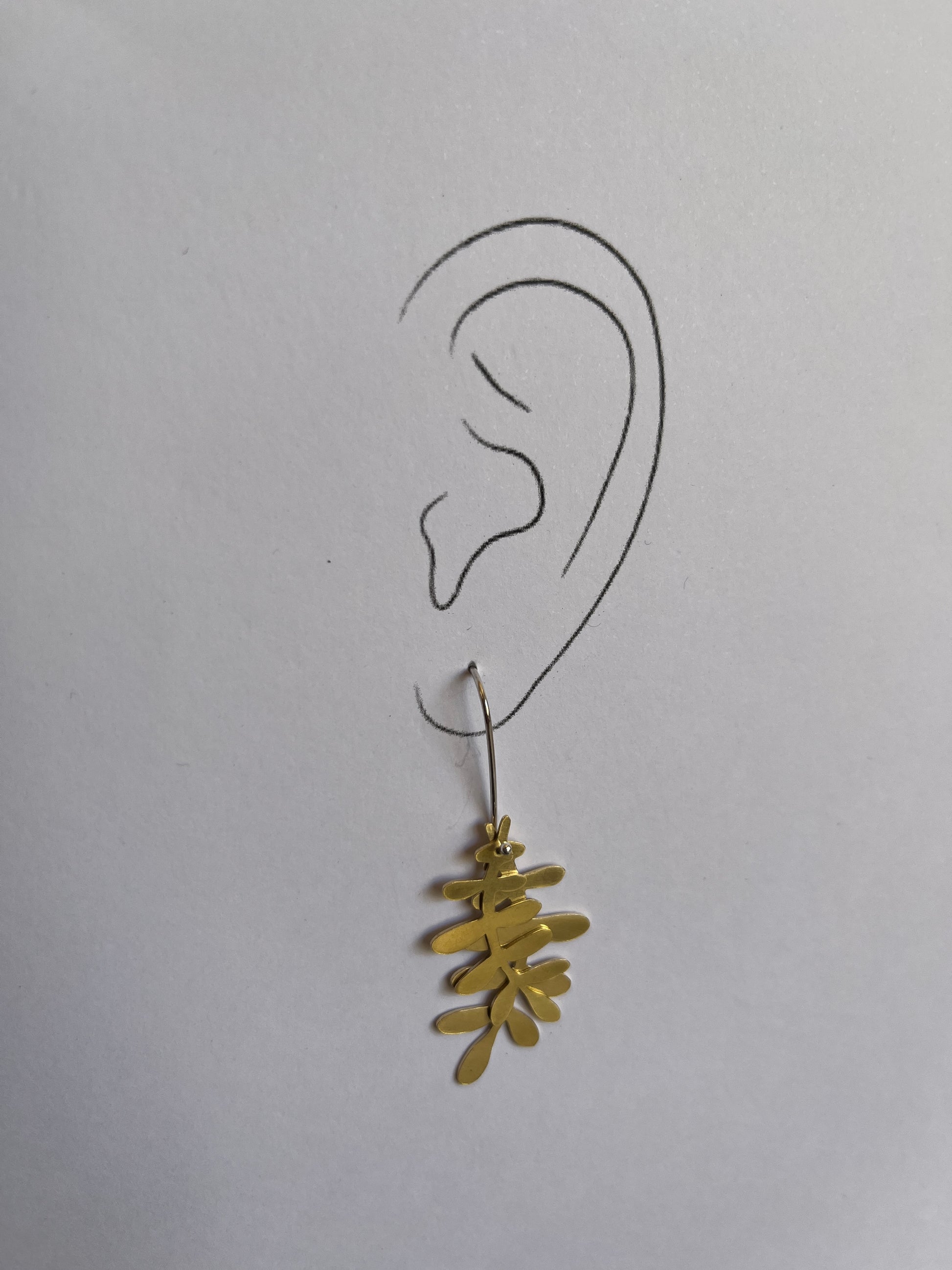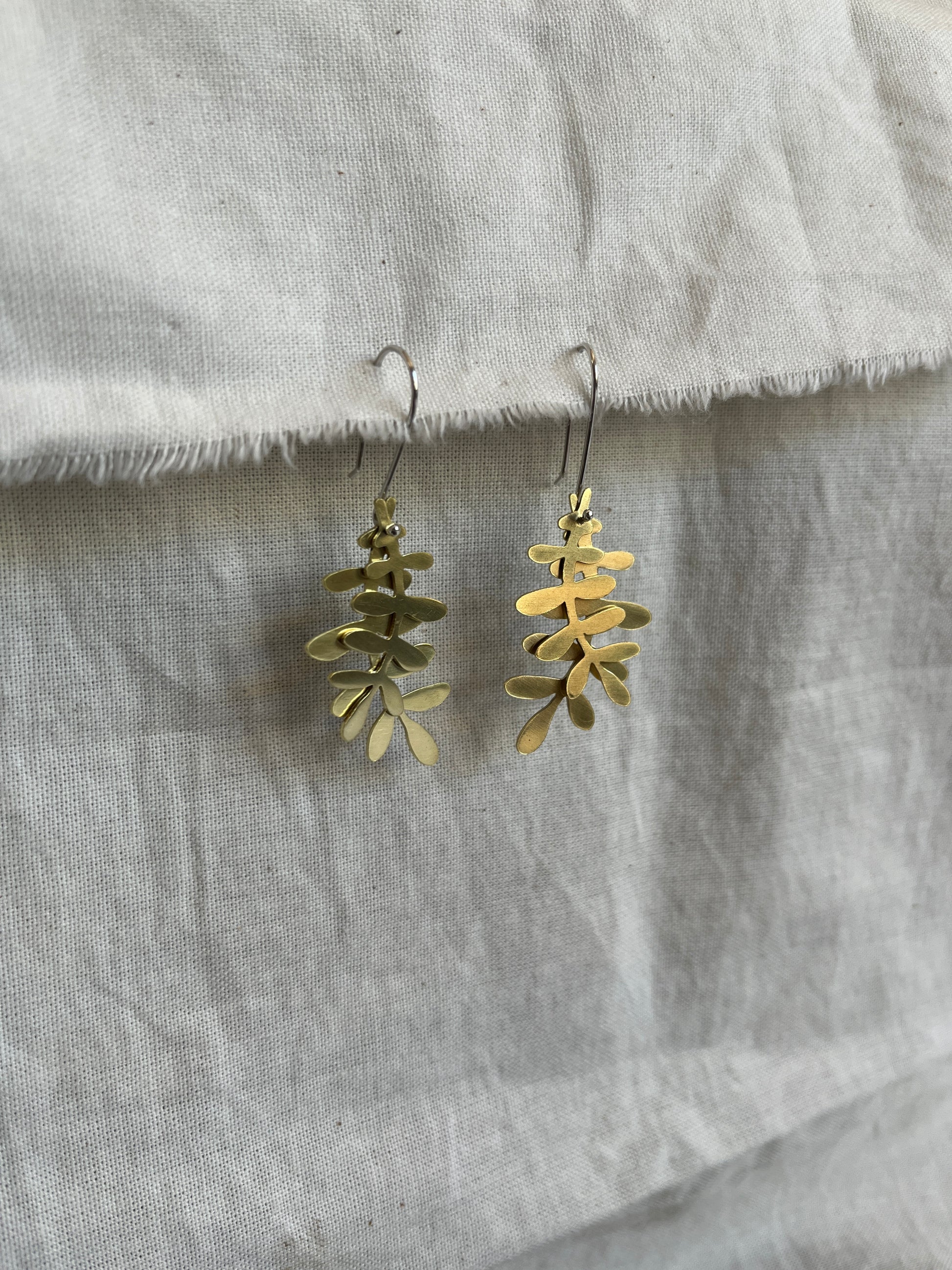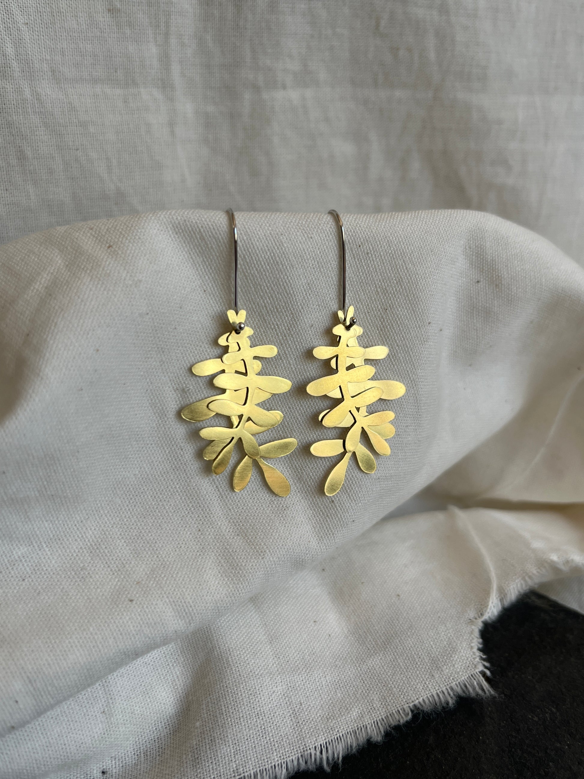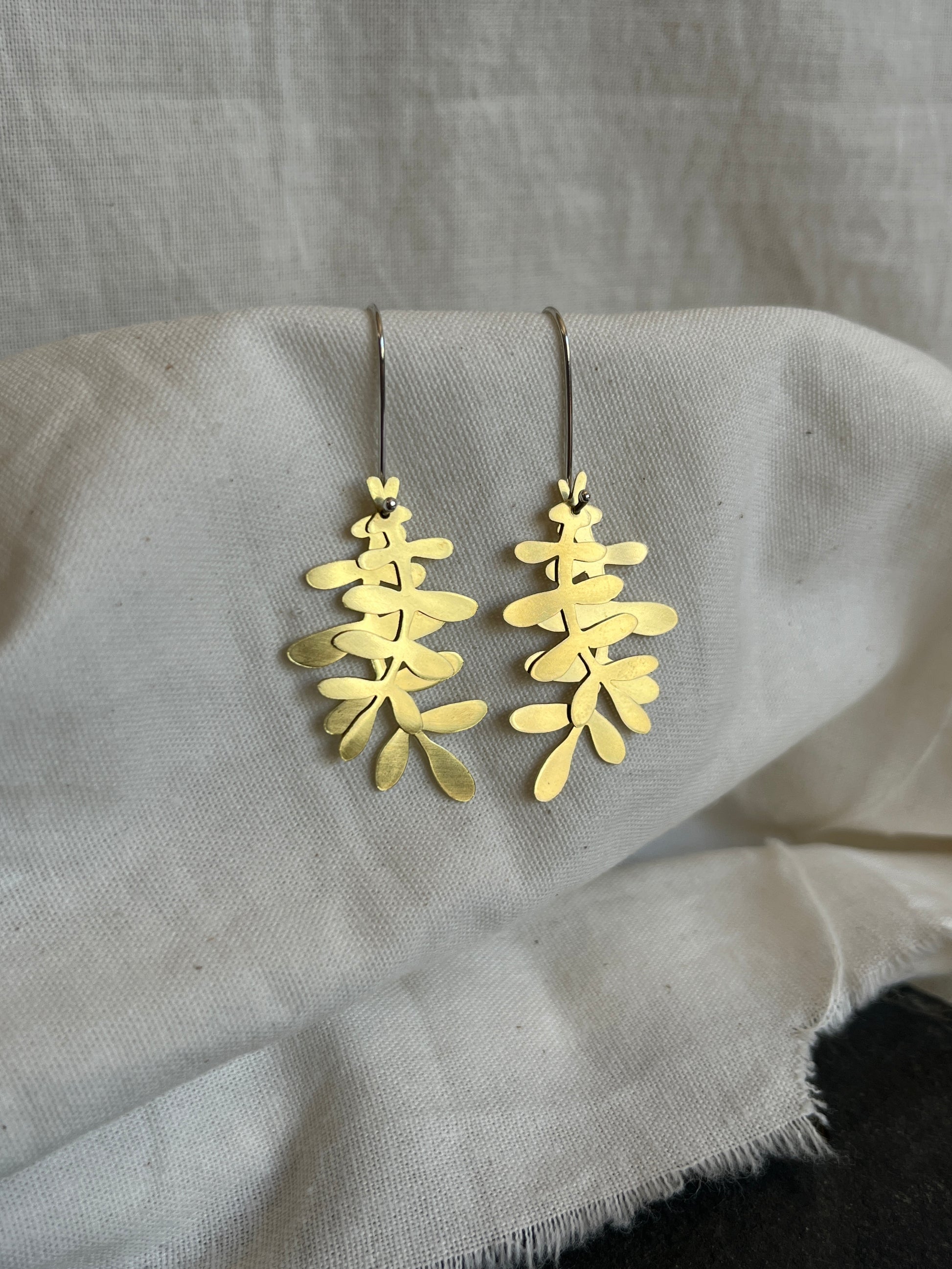 Brass Double Leaves Earrings on Sterling Silver Hooks
