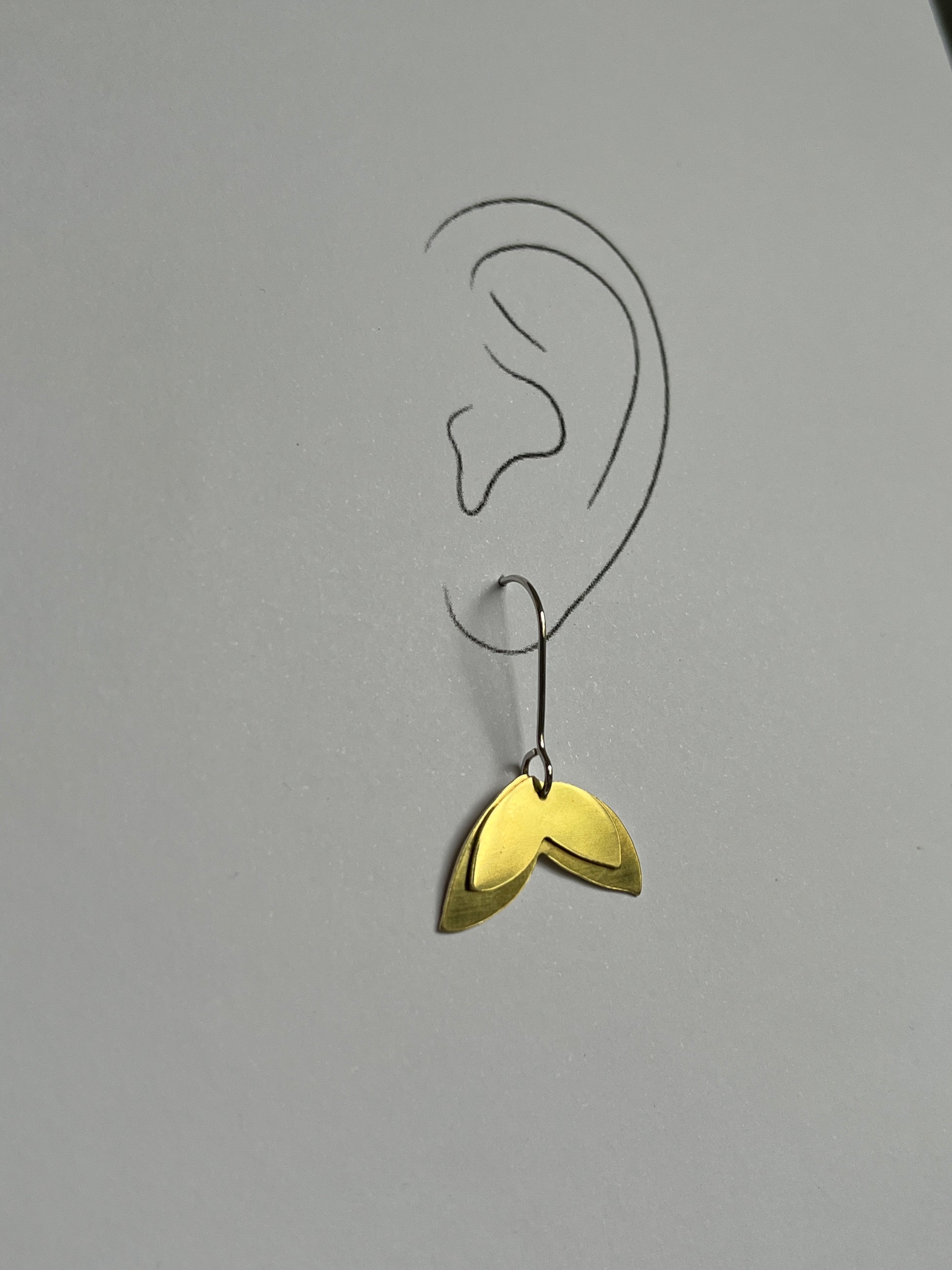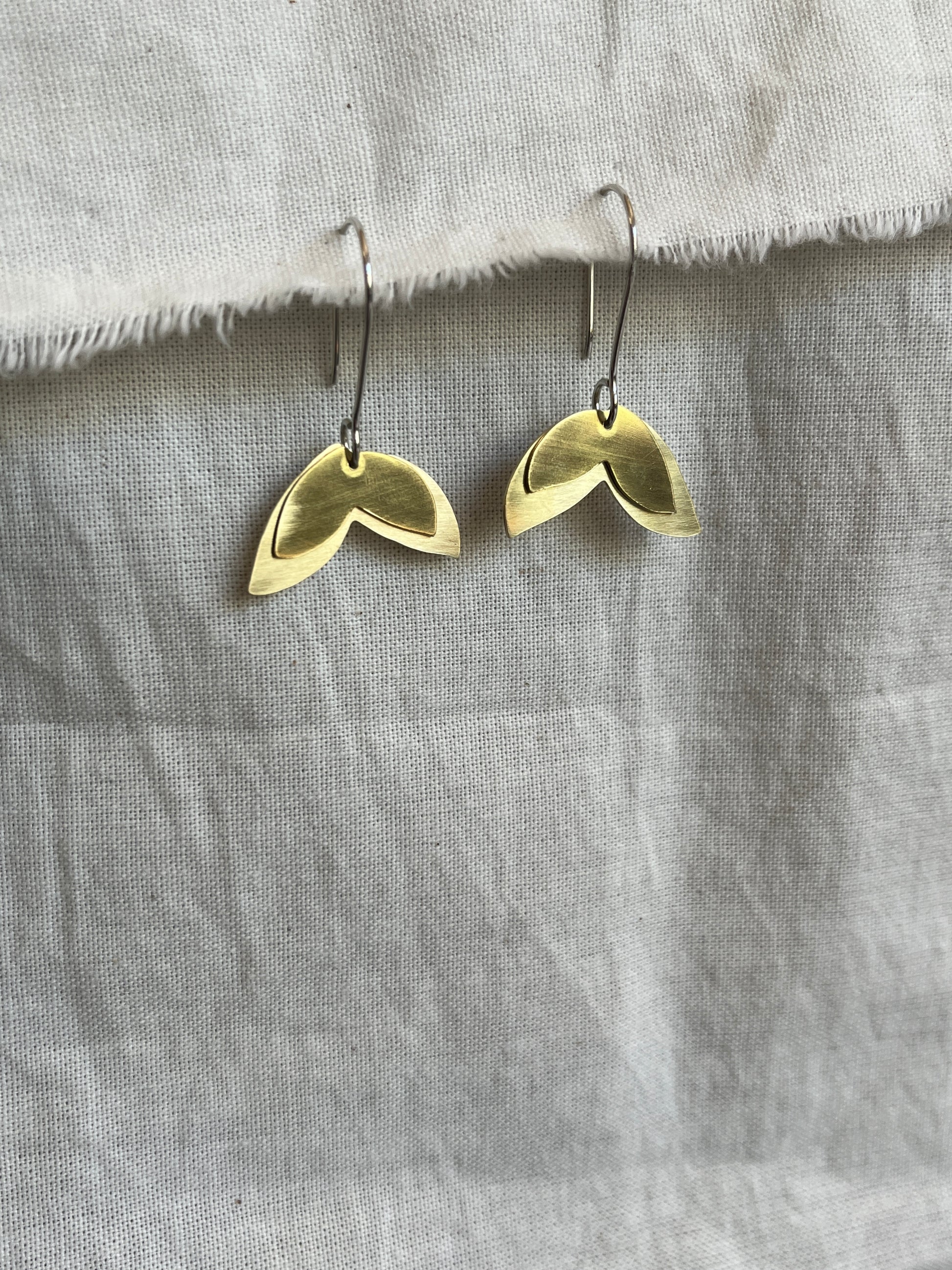 Brass Large Petali Earrings on Sterling Silver Hooks
