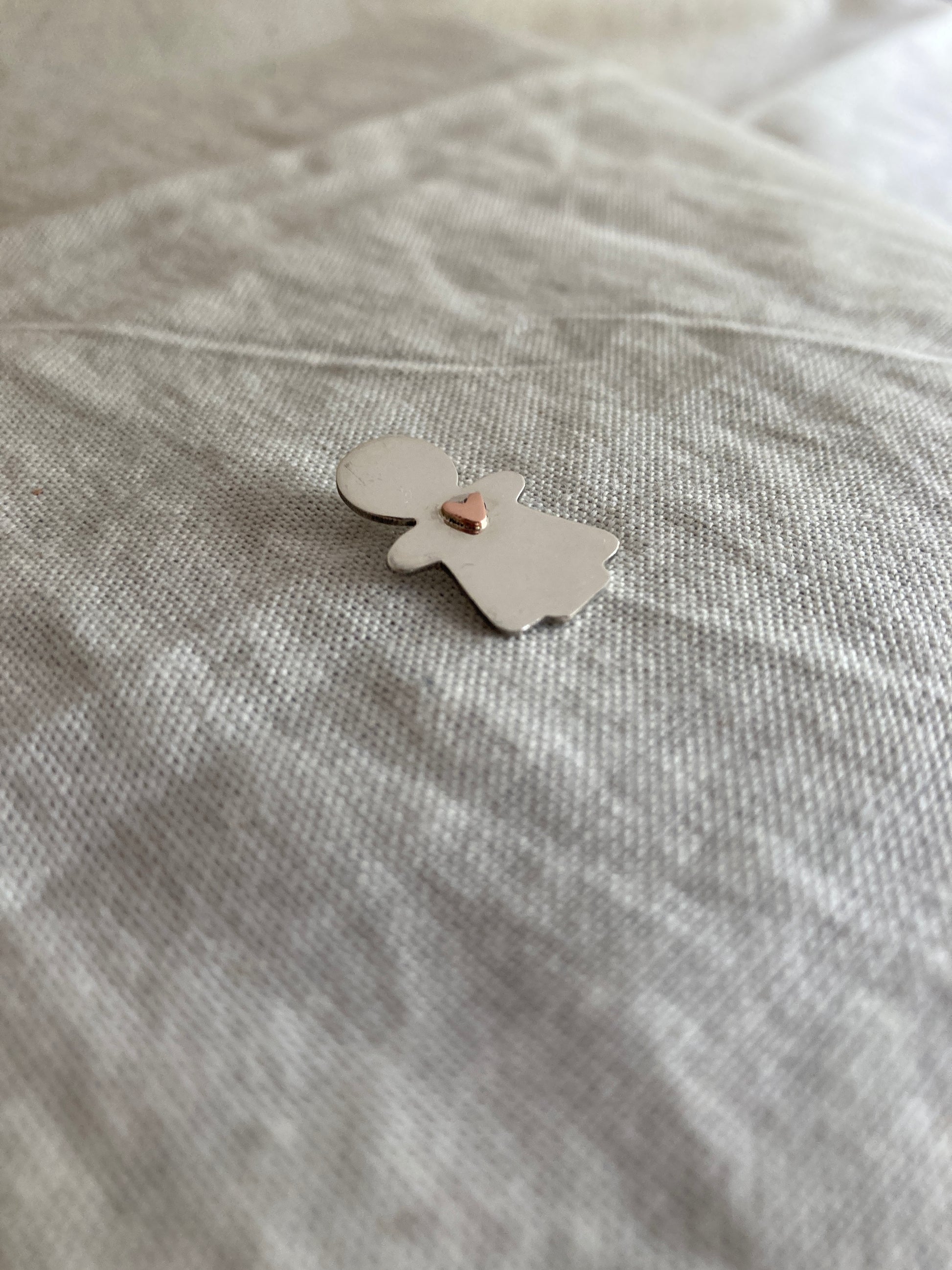 Sterling Silver Little Boy/Girl Pendant with tiny Copper Heart on Sterling Silver Chain