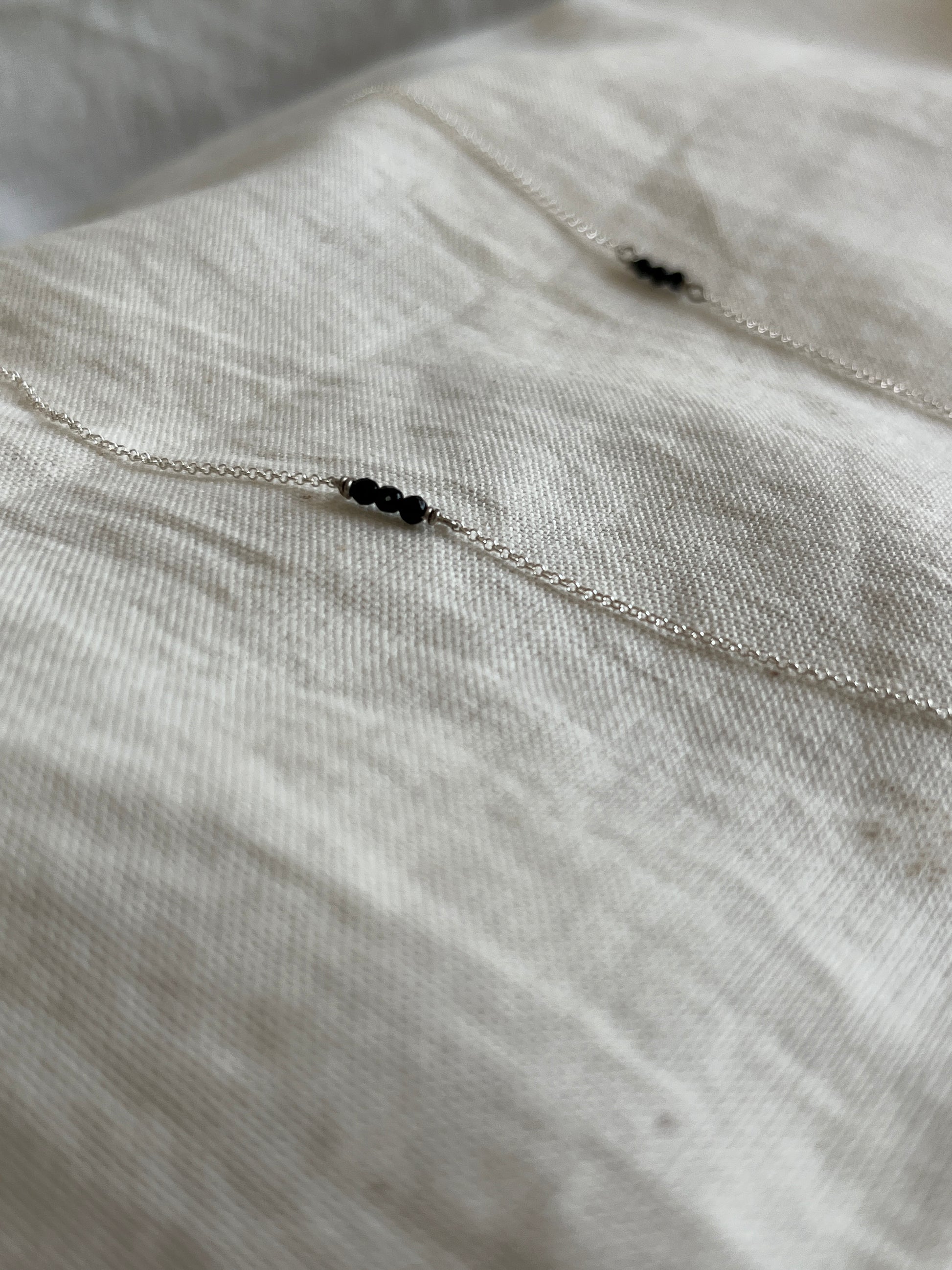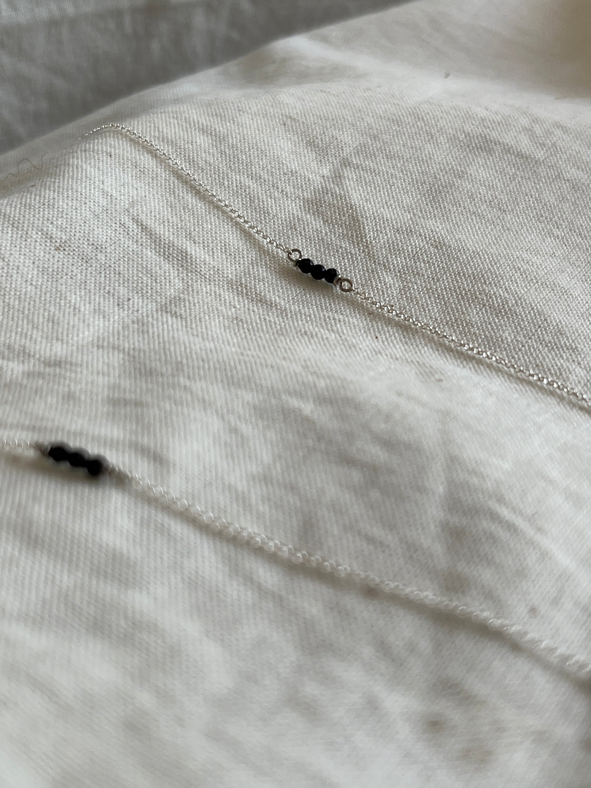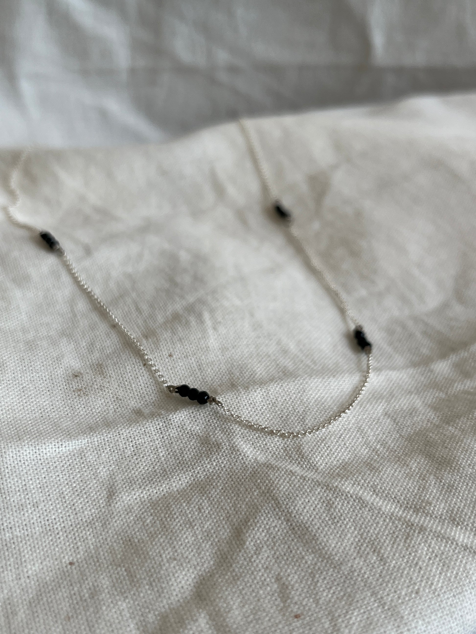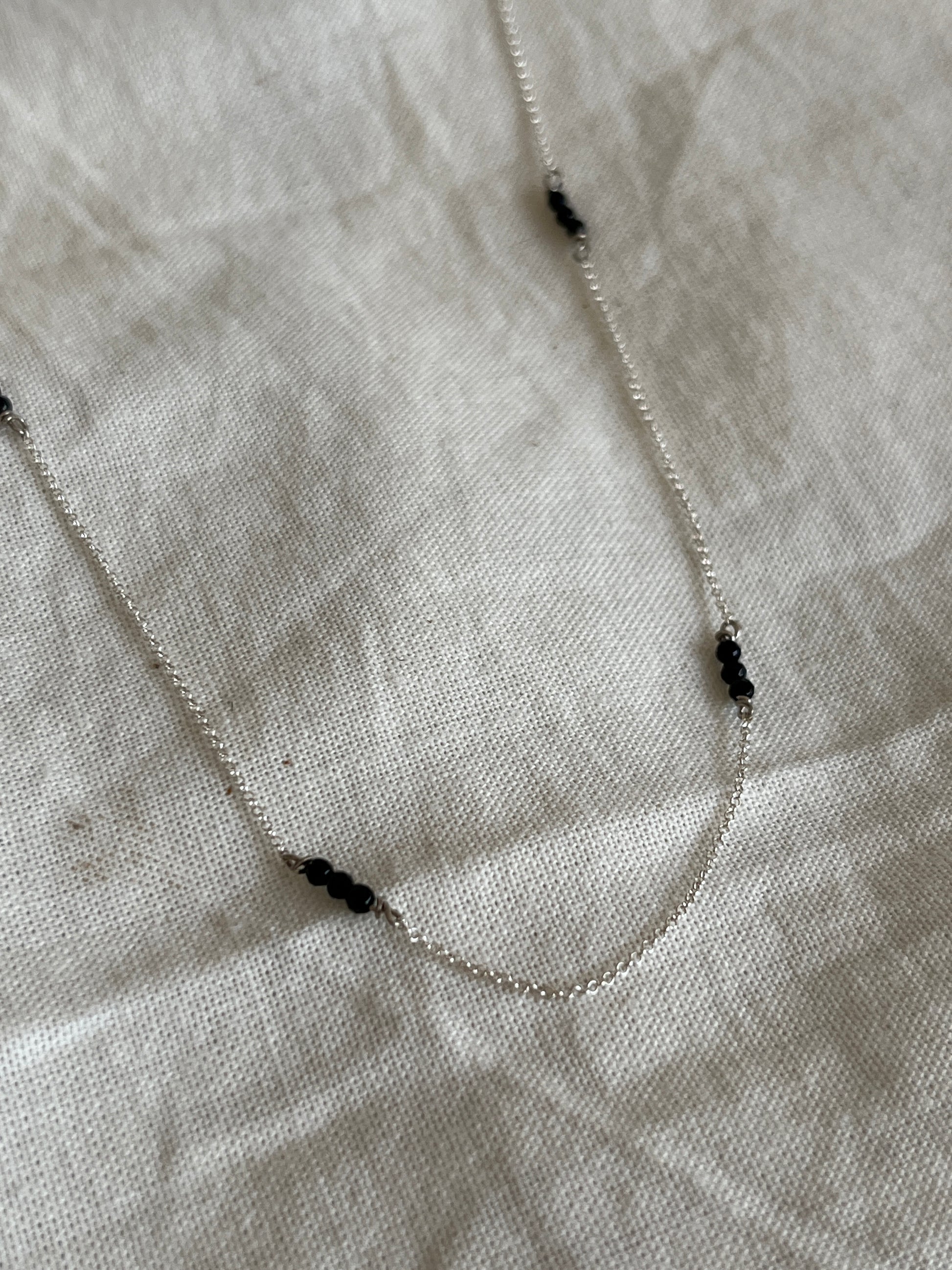 One-of-a-kind Dainty Sterling Silver Chain with Scattered Onyx Faceted Bead Clusters