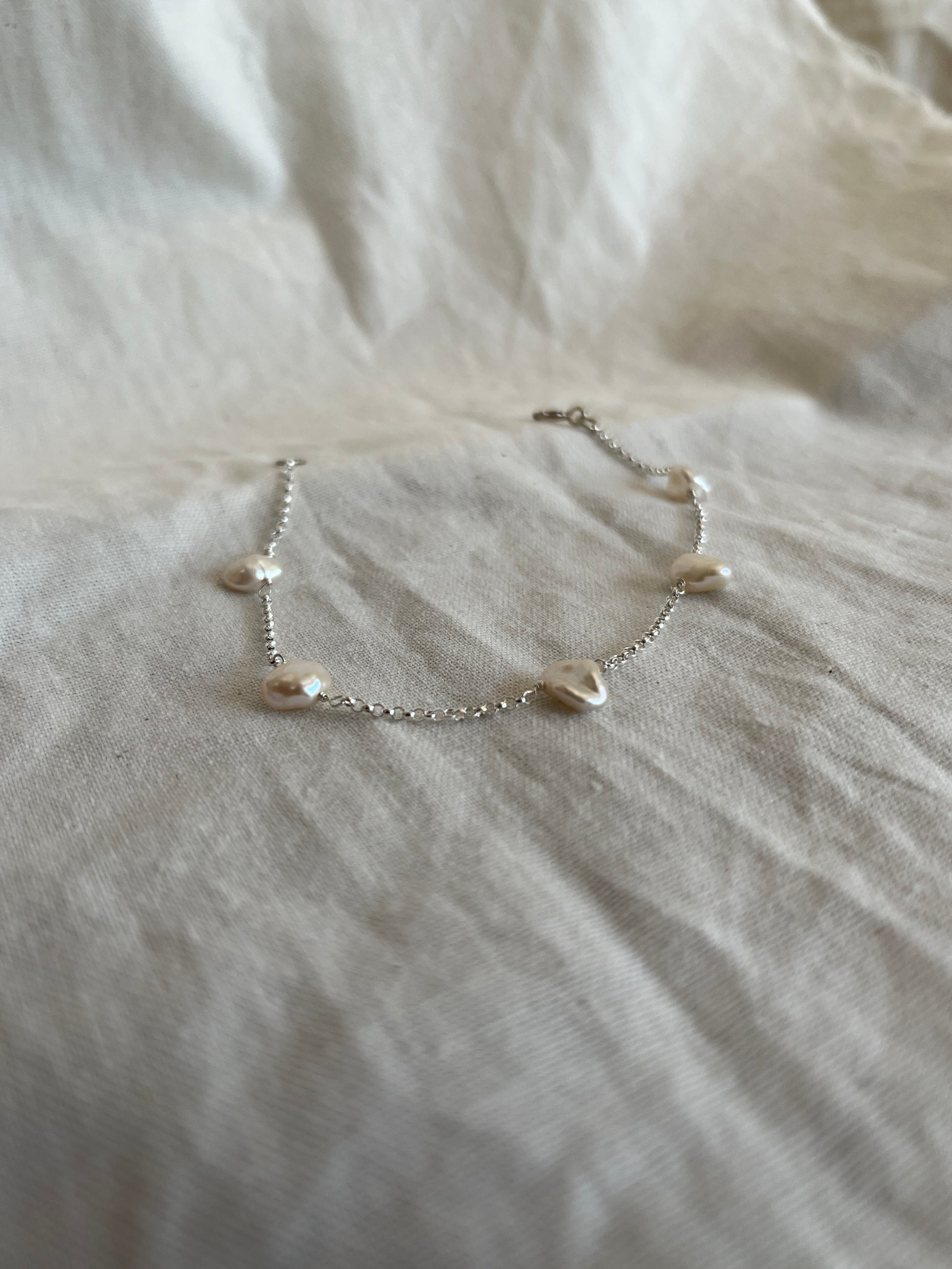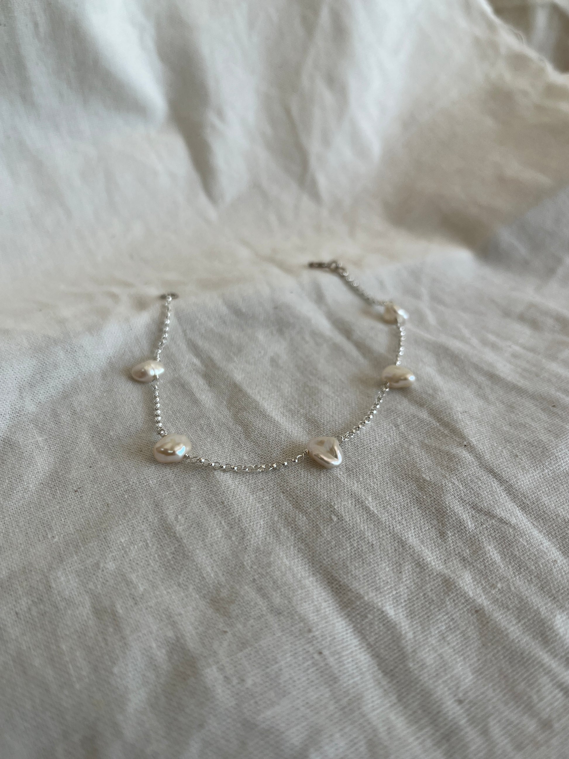 Sterling Silver Chain with 5 scattered Wonky Freshwater Pearls